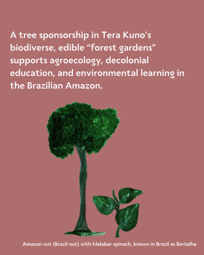 When giving can be more than just a moment—at Christmas or any other occasion: with your tree sponsorship, you give something lasting: a tree in the edible forest gardens of Tera Kuno in the Brazilian Amazon.